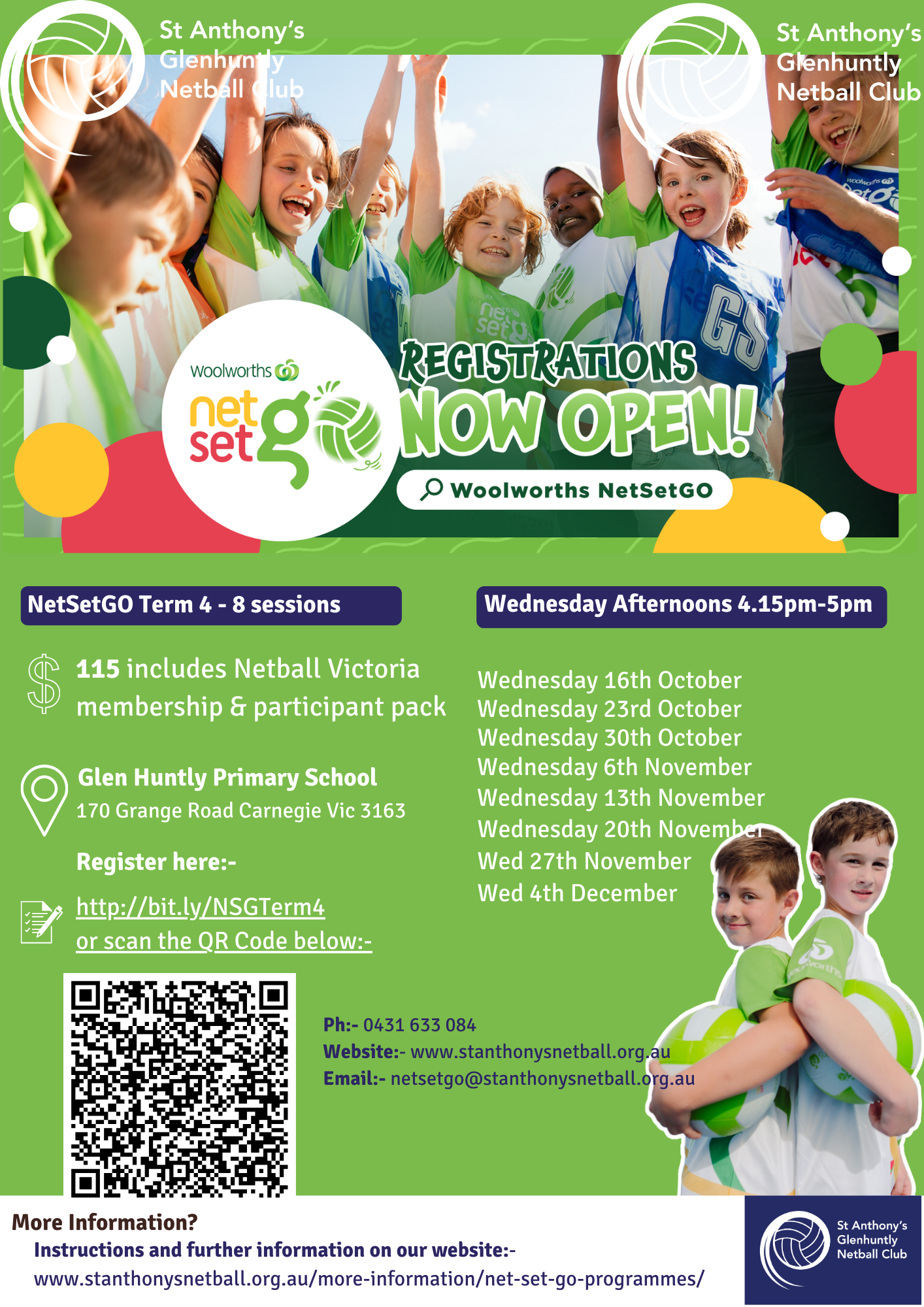 PLEASE NOTE:- We are accepting registrations from children born in 2013 also. As this is outside the Netball Victoria
