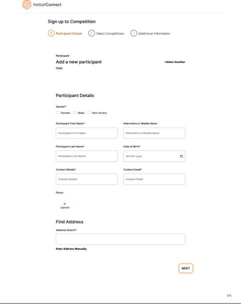 The next screen is the Additional Personal Information required by Netball Victoria. .