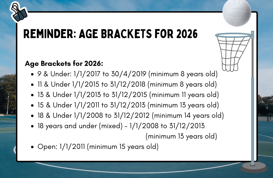 Club Fees for Autumn 2026 remain at $210 for all players as there are 12 rounds plus 2 Finals for U13s & above and U9s & U11s have 14 rounds. Please note that VNA will also be payable (this is an annual fee, payable once in any competition) with players >18 costing $73 for the year, and 18+ $97. This charge will not occur for Spring 2026 as long as you use the same login.